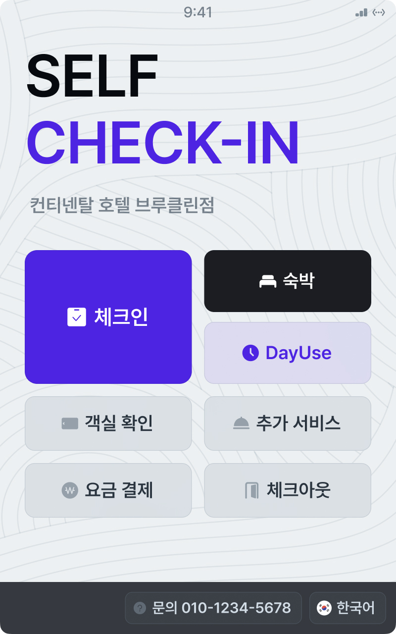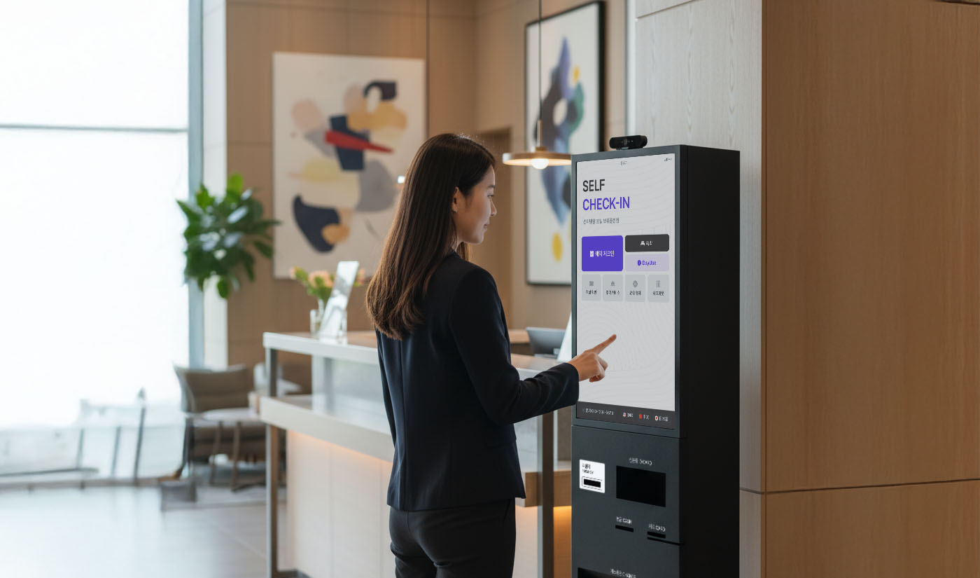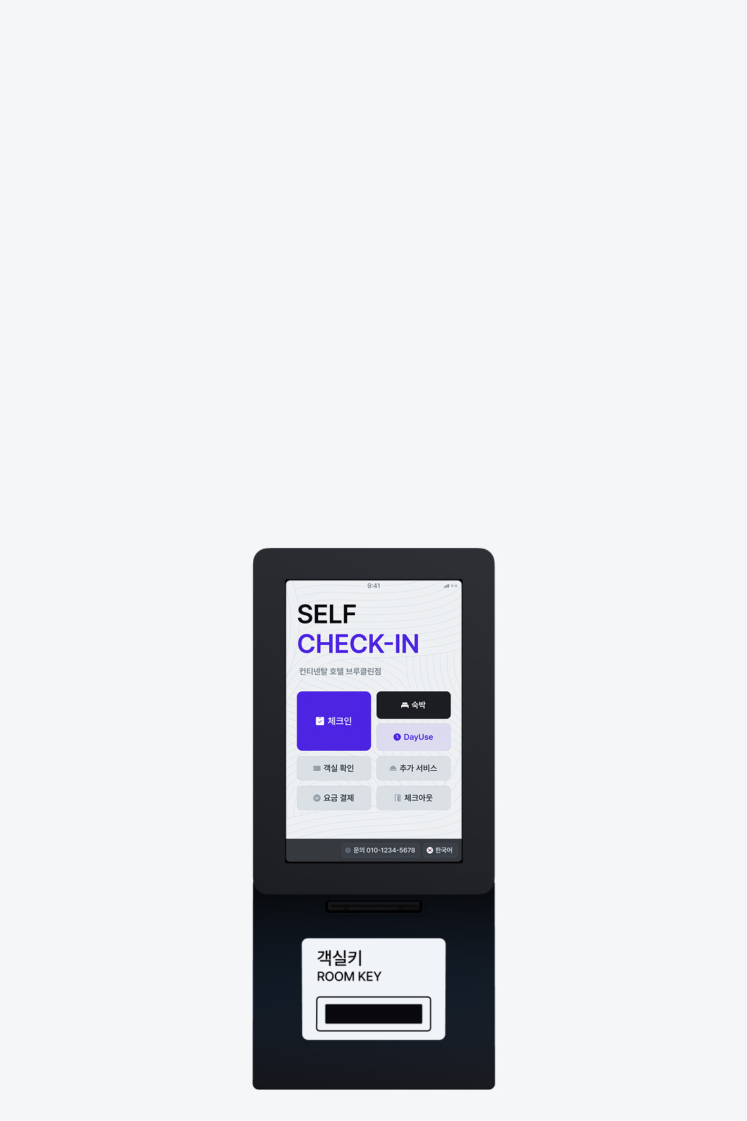 고객은 키오스크를 통해 간편하게 체크인/체크아웃 합니다.