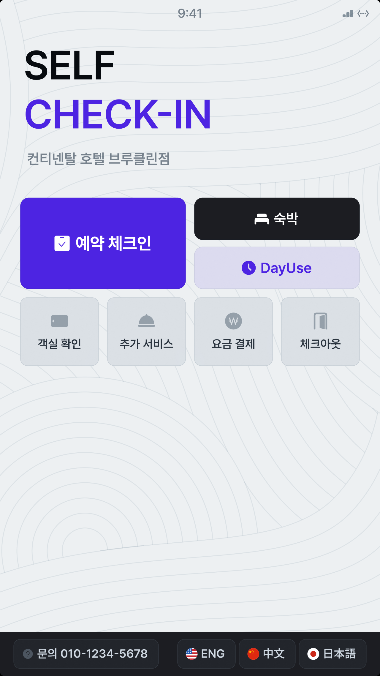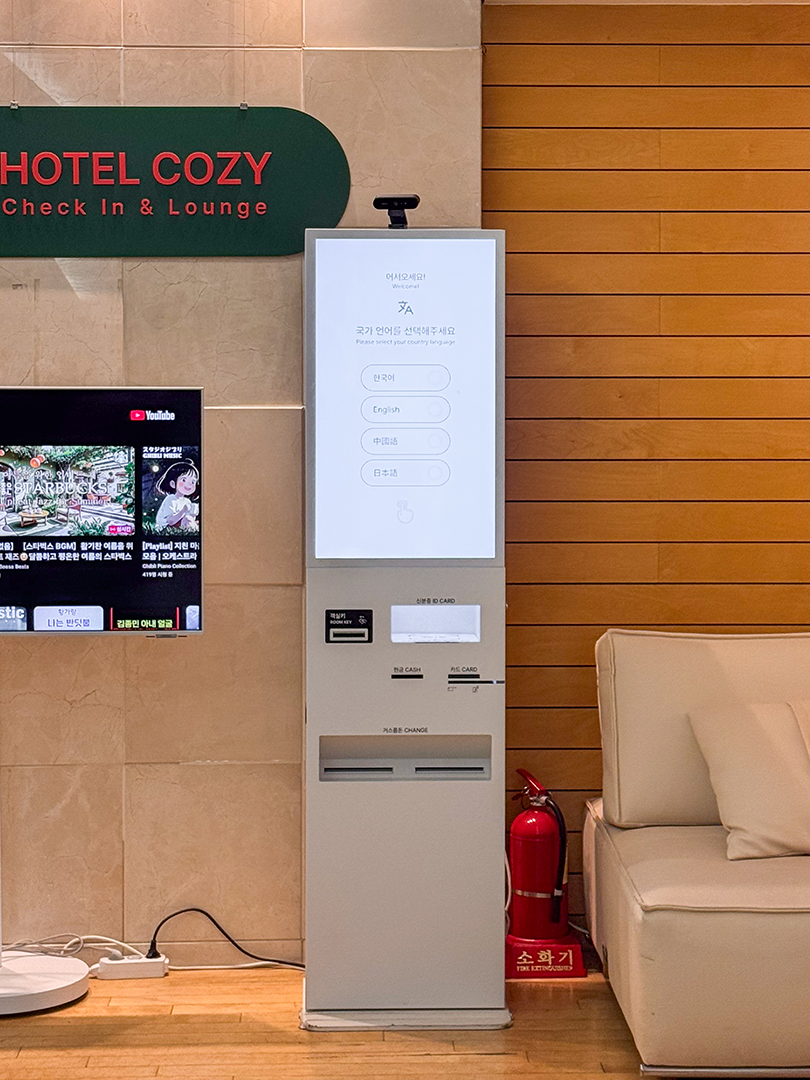 쉬운 사용법과 친절한 안내로, 손님이 스스로 체크인하고 체크아웃합니다. 외국인도 예외는 없죠.