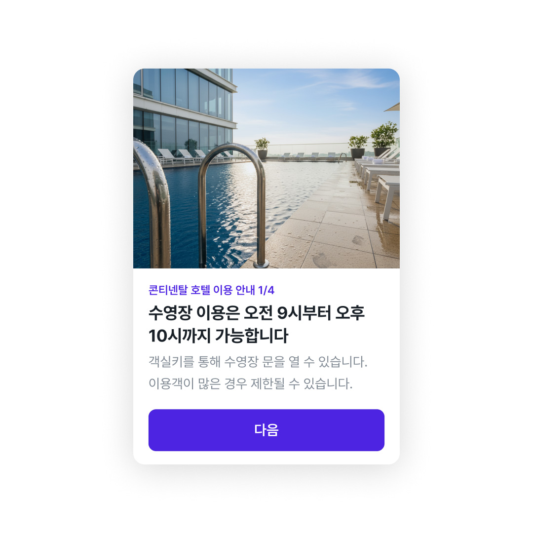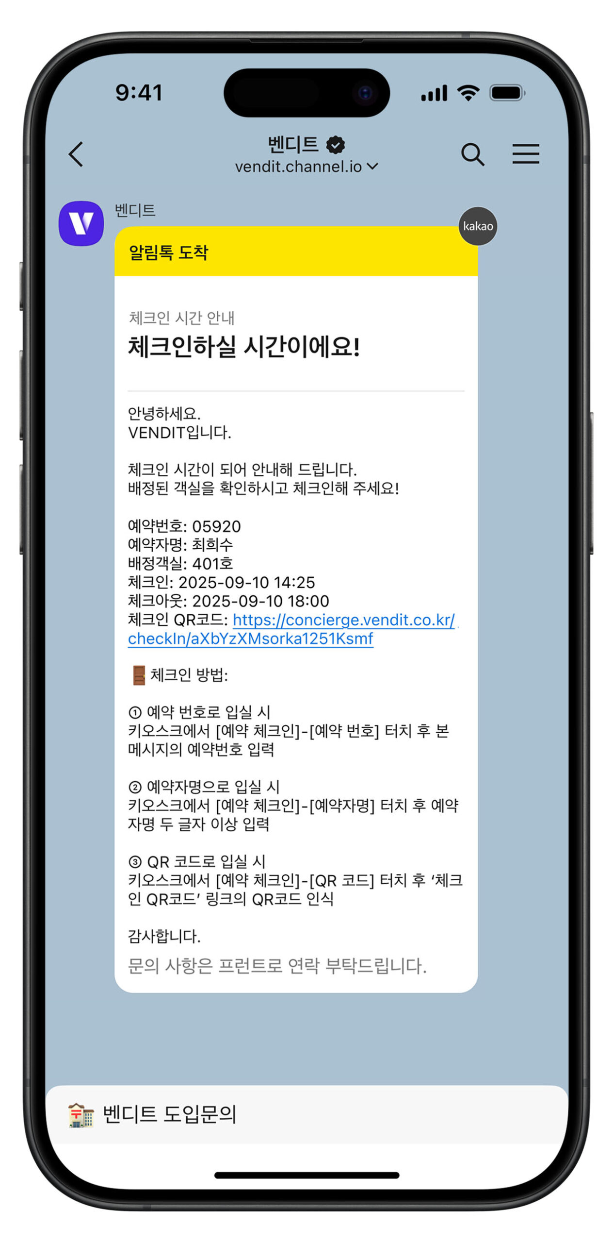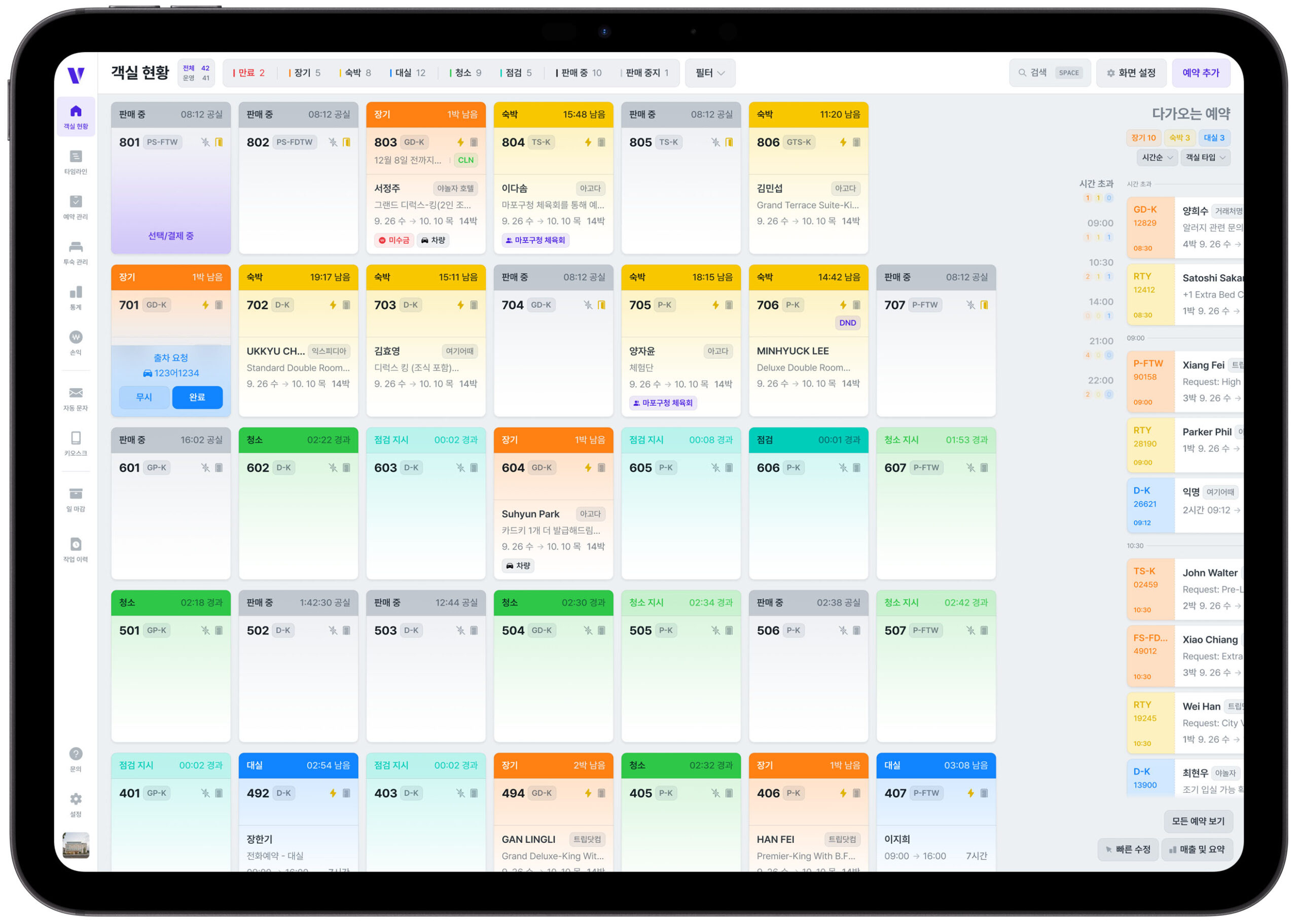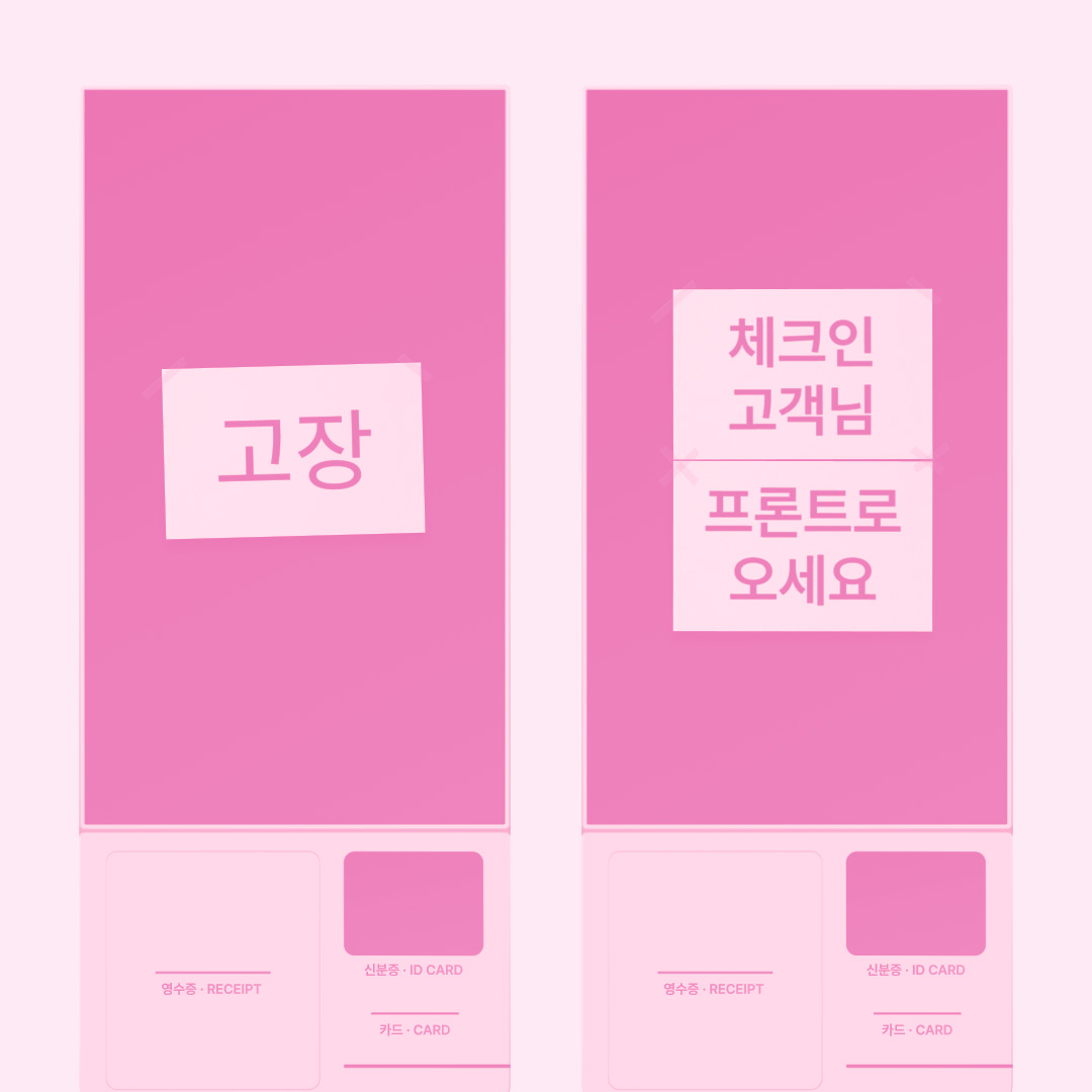 현장 예약 뿐만 아니라 숙박 앱을 통한 예약들도 모두 자동으로 관리하고 객실을 배정합니다. 고객은 그저 숙소에 방문하여, 체크인만 하면 되죠.